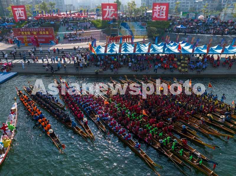图片说明:2024年9月14日,为期三天的广西柳州市融安县2024年融安龙舟公开赛暨第二十三届长安龙舟大赛,吸引八方游客前来观看。