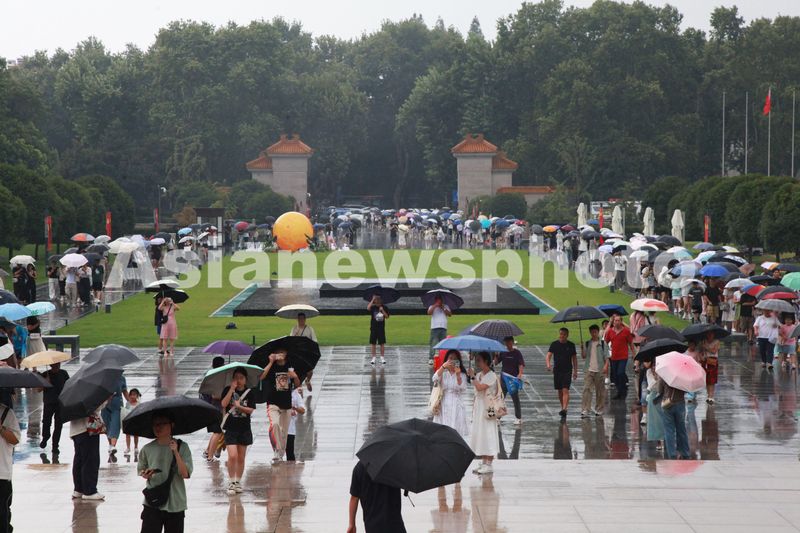 2024年9月16日,江苏省南京市,当日是中秋小长假第二天,受台风“贝碧嘉”影响,南京风雨交加,不少市民和游客冒雨前往南京博物院参观游览。