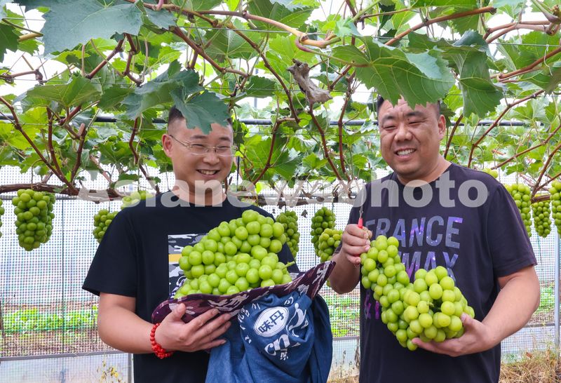 图片说明:2024年9月16日,山东省烟台市福山区东厅街道潘家泊村,回乡创业新农人手捧葡萄喜庆丰收。