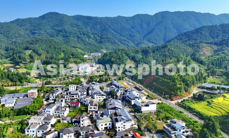 图片说明:2024年9月17日,江西省赣州市安远县三百山镇符山村,层峦叠嶂、林海苍莽,鳞次栉比的农房与泛黄的稻田相映成景,仲秋时节的乡村大地如同一幅画,美不胜收。