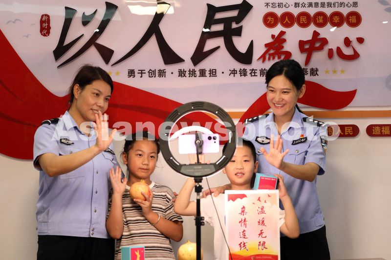 2024年9月17日,江苏省宝应县公安局夏集派出所民警与留守学生通过网络与远在外地务工的父母视频通话,送上中秋节祝福。