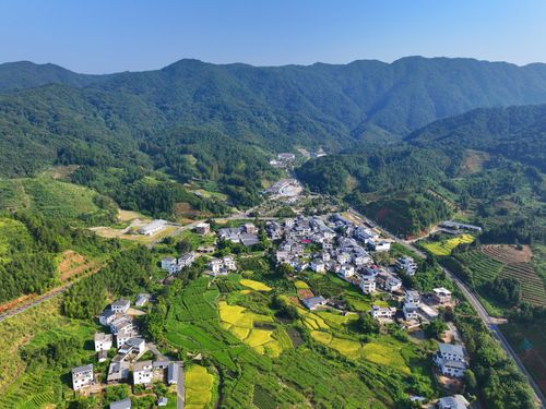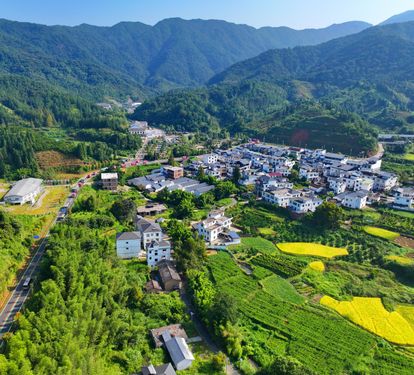 图片说明:2024年9月17日,江西省赣州市安远县三百山镇符山村,层峦叠嶂、林海苍莽,鳞次栉比的农房与泛黄的稻田相映成景,仲秋时节的乡村大地如同一幅画,美不胜收。