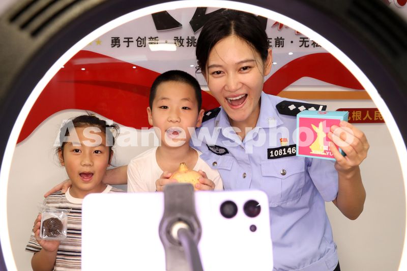 2024年9月17日,江苏省宝应县公安局夏集派出所民警与留守学生通过网络与远在外地务工的父母视频通话,送上中秋节祝福。
