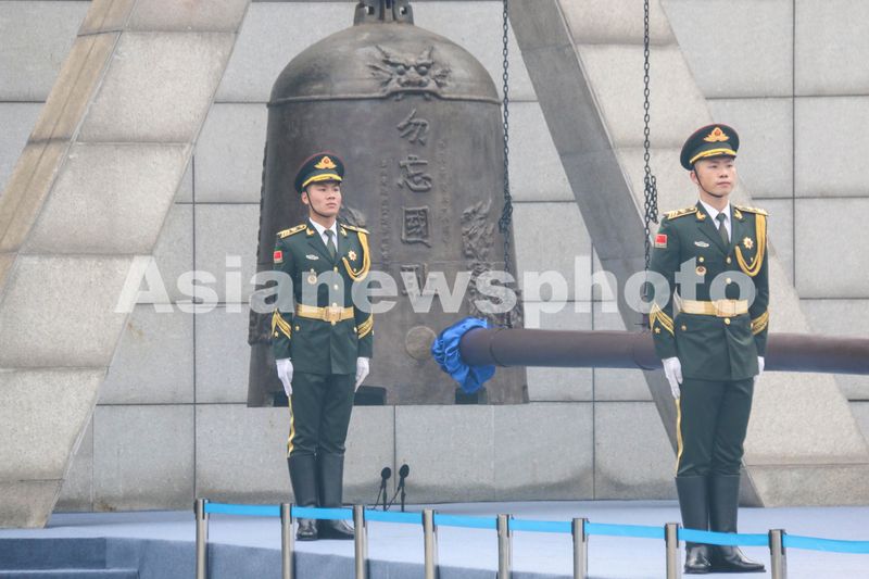2024年9月18日,勿忘九一八撞钟鸣警仪式在沈阳“九·一八”历史博物馆残历碑广场举行。
