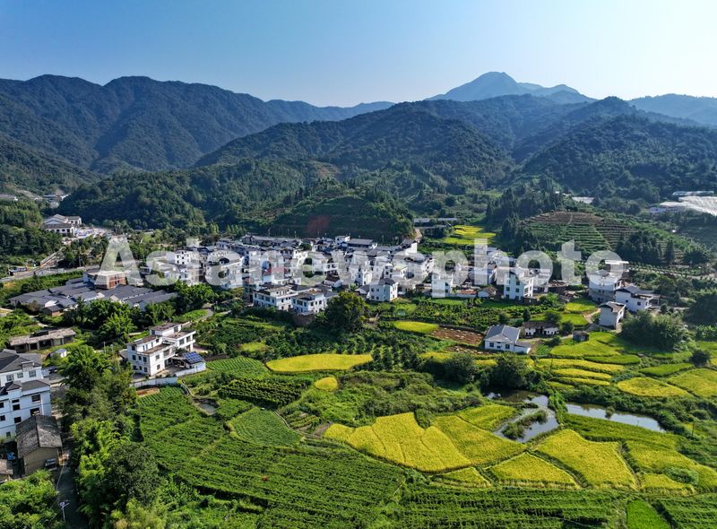 图片说明:2024年9月17日,江西省赣州市安远县三百山镇符山村,层峦叠嶂、林海苍莽,鳞次栉比的农房与泛黄的稻田相映成景,仲秋时节的乡村大地如同一幅画,美不胜收。