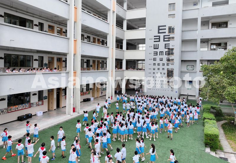 图片说明:2024年9月19日,浙江省东阳市吴宁一校教学楼墙壁上,一个巨大的视力表映入眼前,许多学生在此观摩,有的学生顺手就对着视力表进行了视力测试。