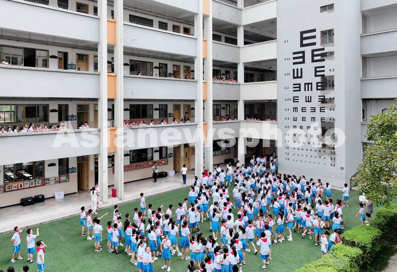 图片说明:2024年9月19日,浙江省东阳市吴宁一校教学楼墙壁上,一个巨大的视力表映入眼前,许多学生在此观摩,有的学生顺手就对着视力表进行了视力测试。