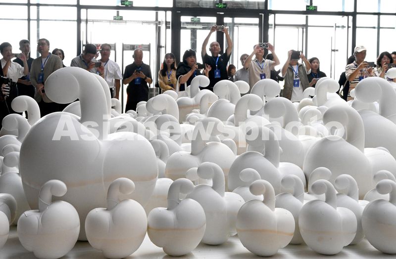 图片说明:9月20日,参观者在“磁·引力—2024中国(峰峰)磁州窑国际陶瓷艺术双年展”上参观。