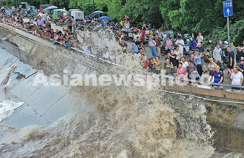 浙江杭州:台风“普拉桑”逼近 钱塘江潮涌增威 查看组图
