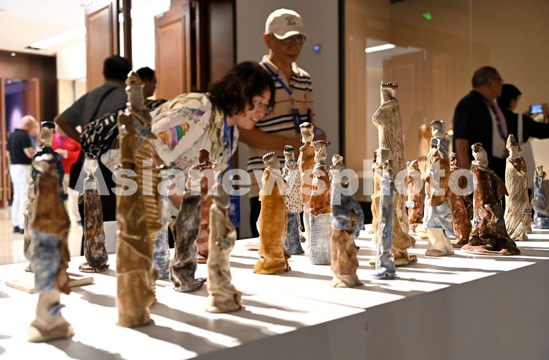 图片说明:9月20日,参观者在“磁·引力—2024中国(峰峰)磁州窑国际陶瓷艺术双年展”上参观。