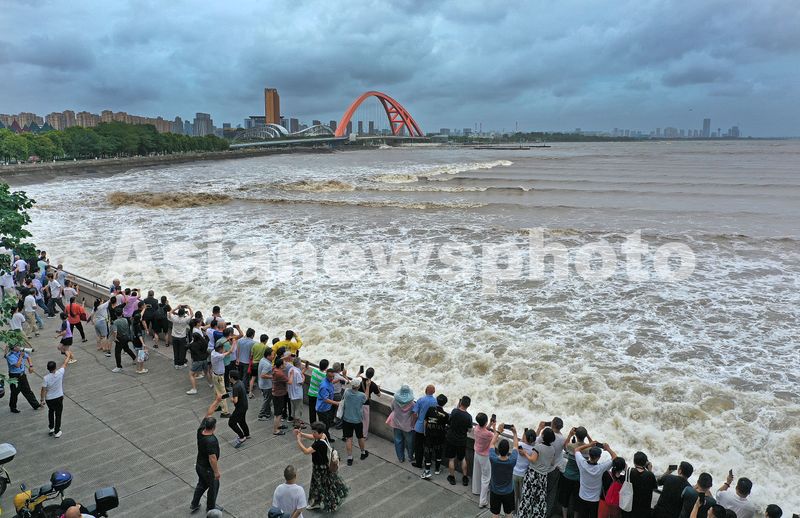 浙江杭州:台风“普拉桑”逼近 钱塘江潮涌增威 查看组图