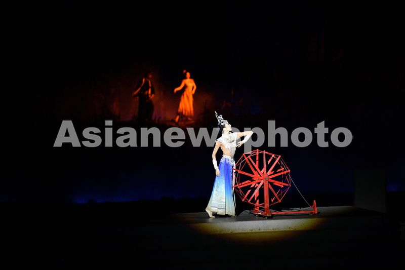 2024年9月20日,演员在贵州省求黔东南苗族侗族自治州雷山县大塘镇剧场表演苗族歌舞诗剧《仰欧桑》。