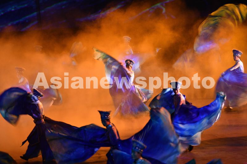 2024年9月20日,演员在贵州省求黔东南苗族侗族自治州雷山县大塘镇剧场表演苗族歌舞诗剧《仰欧桑》。