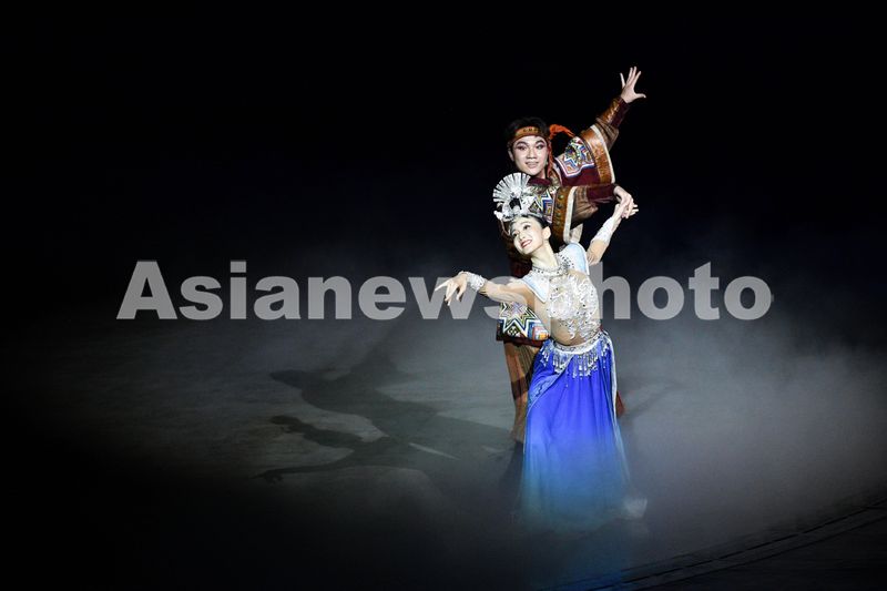 2024年9月20日,演员在贵州省求黔东南苗族侗族自治州雷山县大塘镇剧场表演苗族歌舞诗剧《仰欧桑》。