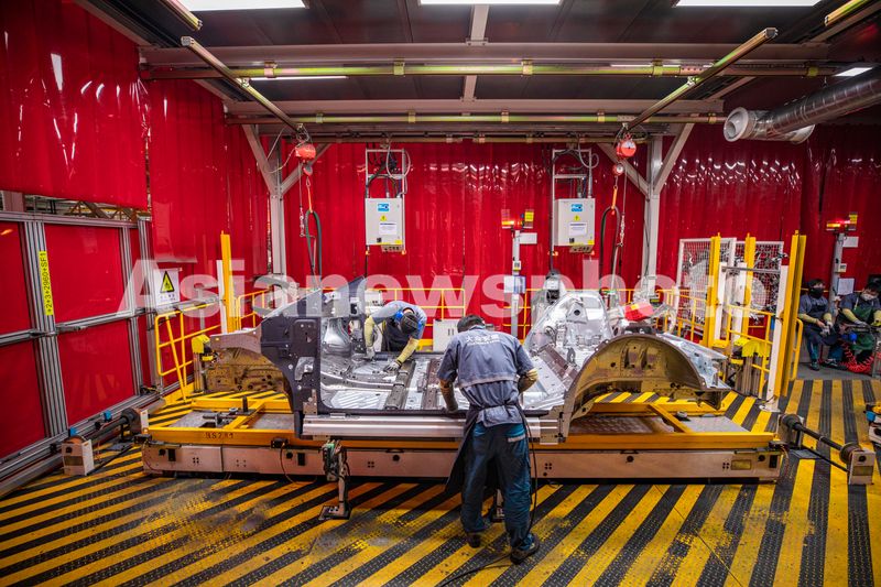 图片说明:2024年9月25日,安徽合肥,大众智能电动汽车工厂内,工人们正在工作。