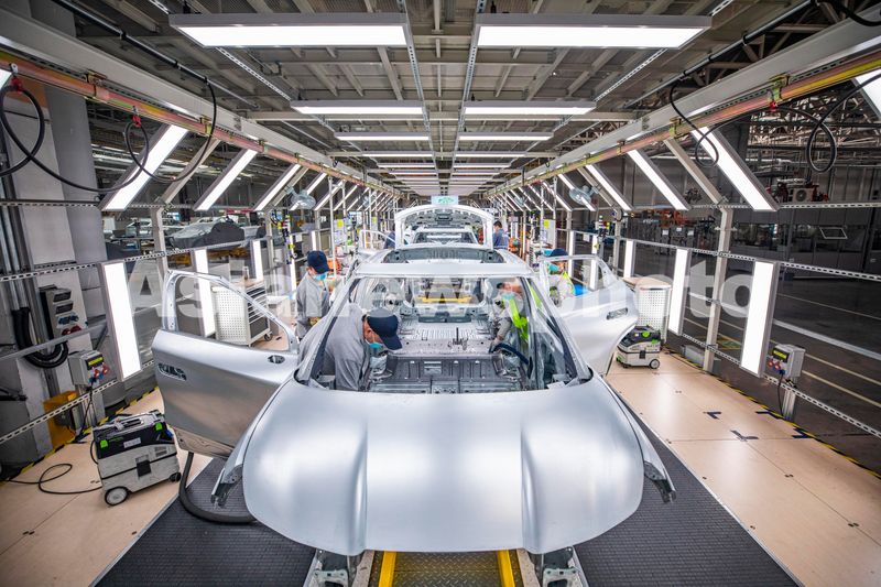 图片说明:2024年9月25日,安徽合肥,大众智能电动汽车工厂内,工人们正在工作。