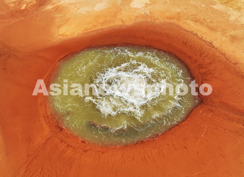 秋分时节,空中俯瞰脉络清晰、栩栩如生的大泉眼,其周围点缀着许多色彩鲜艳的小泉眼,呈现出红褐色、金黄色、铁锈色等五颜六色交相辉映的天然“调色板”,宛如一幅幅浓妆重彩、超级震撼的油彩画。