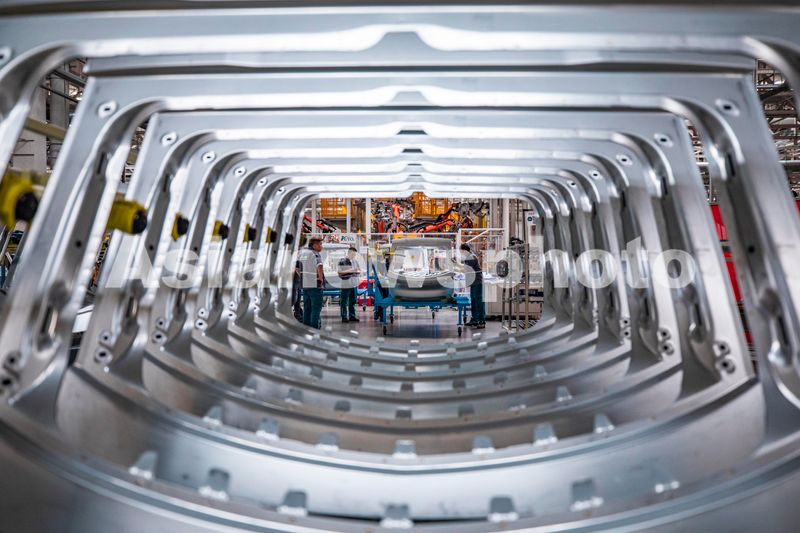 图片说明:2024年9月25日,安徽合肥,大众智能电动汽车工厂内,工人们正在工作。