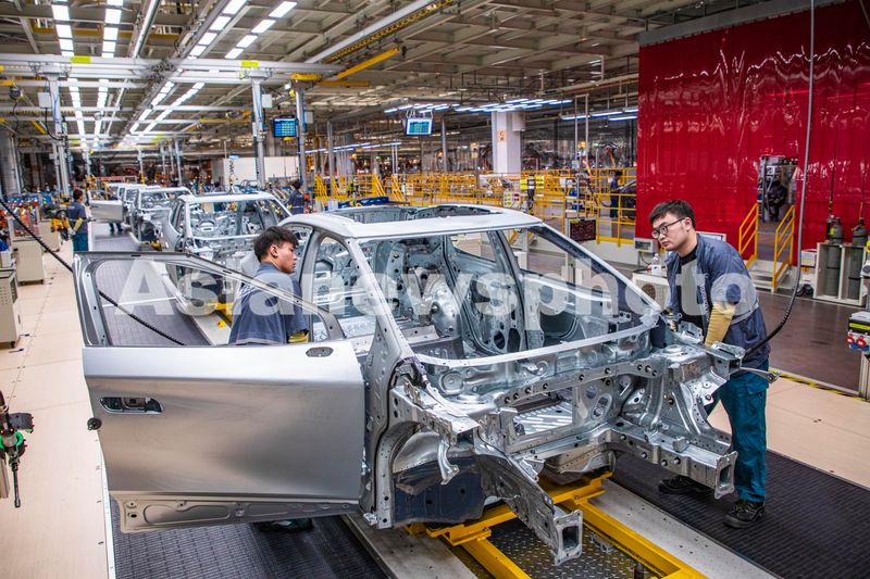 图片说明:2024年9月25日,安徽合肥,大众智能电动汽车工厂内,工人们正在工作。