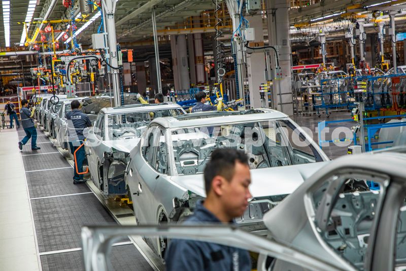 图片说明:2024年9月25日,安徽合肥,大众智能电动汽车工厂内,工人们正在工作。