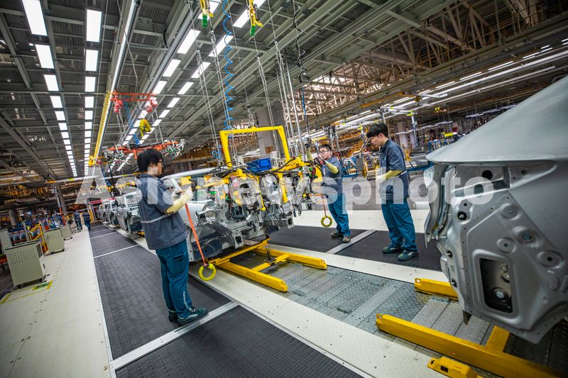 图片说明:2024年9月25日,安徽合肥,大众智能电动汽车工厂内,工人们正在工作。