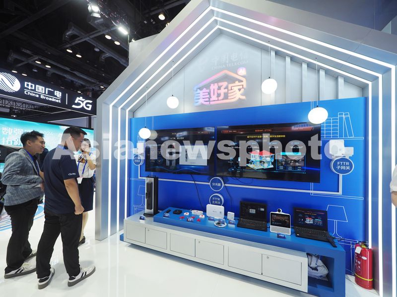 2024年9月25日,北京国家会议中心,观众在2024年中国国际信息通信展览会上中国电信展位参观家庭数字网络系统。
