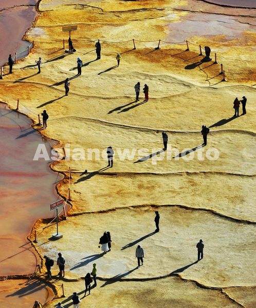 秋分时节,空中俯瞰脉络清晰、栩栩如生的大泉眼,其周围点缀着许多色彩鲜艳的小泉眼,呈现出红褐色、金黄色、铁锈色等五颜六色交相辉映的天然“调色板”,宛如一幅幅浓妆重彩、超级震撼的油彩画。