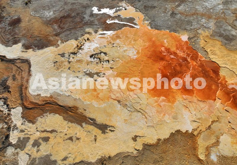 秋分时节,空中俯瞰脉络清晰、栩栩如生的大泉眼,其周围点缀着许多色彩鲜艳的小泉眼,呈现出红褐色、金黄色、铁锈色等五颜六色交相辉映的天然“调色板”,宛如一幅幅浓妆重彩、超级震撼的油彩画。