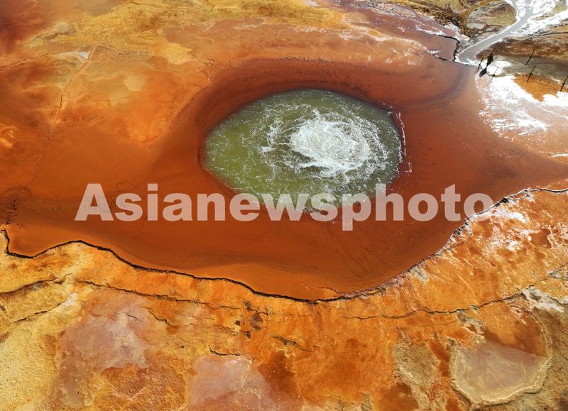 秋分时节,空中俯瞰脉络清晰、栩栩如生的大泉眼,其周围点缀着许多色彩鲜艳的小泉眼,呈现出红褐色、金黄色、铁锈色等五颜六色交相辉映的天然“调色板”,宛如一幅幅浓妆重彩、超级震撼的油彩画。