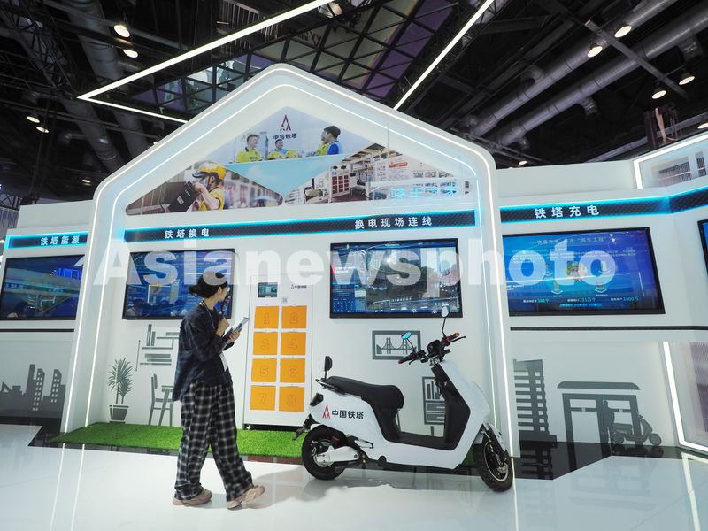 2024年9月25日,北京国家会议中心,观众在2024年中国国际信息通信展览会上中国铁塔展位“节能降碳”专区参观。