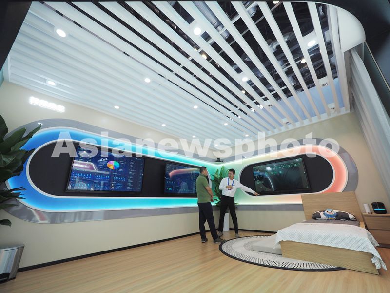 2024年9月25日,北京国家会议中心,观众在2024年中国国际信息通信展览会上参观“智慧康养”模拟场景。