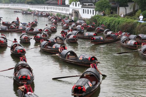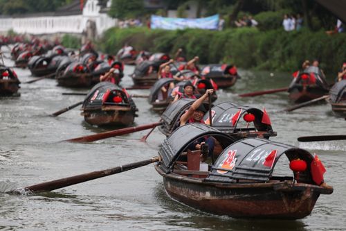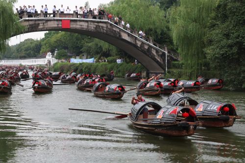 绍兴75艘乌篷船竞舟浙东运河 查看组图