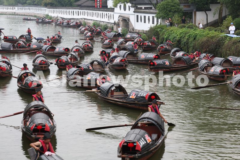 图片说明:2024"运河争辉"绍兴乌篷船马拉松邀请赛在浙江绍兴浙东运河越城区段举行。
