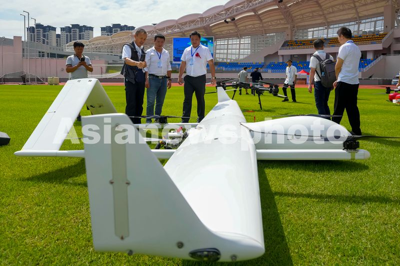 图片说明:2024年9月27日上午,福建省南安市新体育场,航空爱好者正在观赏了解无人机。