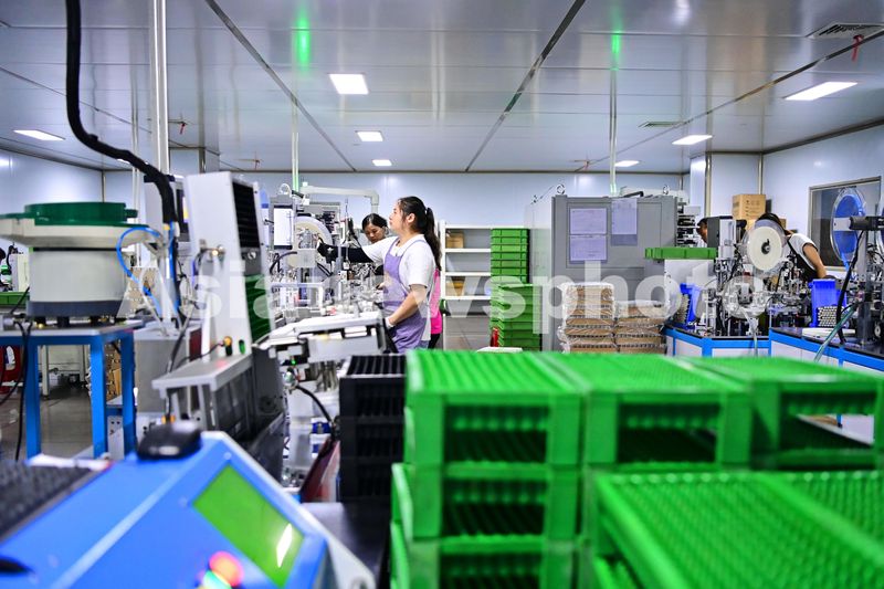 2024年9月26日,江西省抚州市广昌县工业园区的一家新能源科技公司锂电池生产车间里,自动化设备运转有序,工人在加工出口的新能源锂电池。