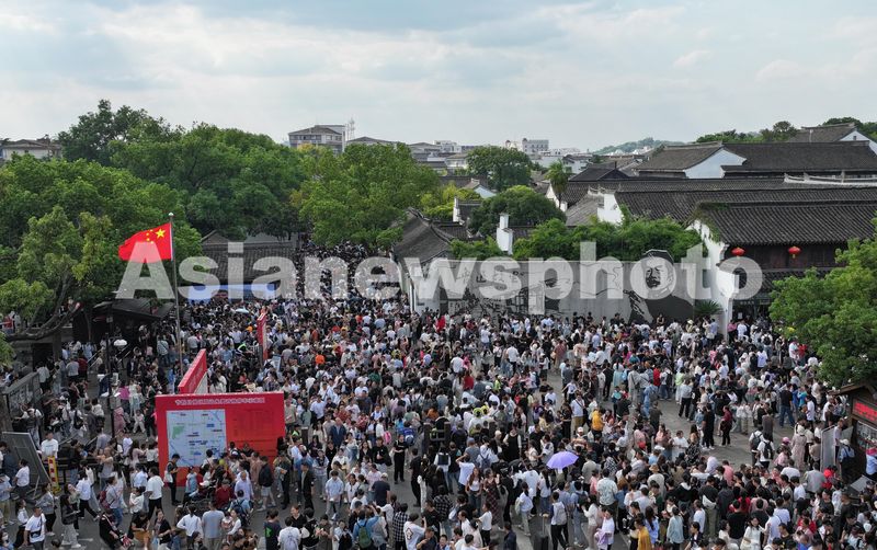 图片说明:2024年10月2日,国庆假期第二天,浙江绍兴鲁迅故里景区游人如织,热闹非凡(无人机照片)。