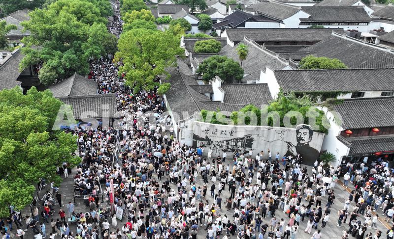 图片说明:2024年10月2日,国庆假期第二天,浙江绍兴鲁迅故里景区游人如织,热闹非凡(无人机照片)。