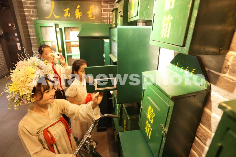 2024年10月2日,游客在浙江省湖州市德清县乾元镇城关记忆馆了解人民邮电历史。