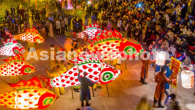 河南洛阳:赏鱼灯非遗民俗 丰富假期夜生活 查看组图