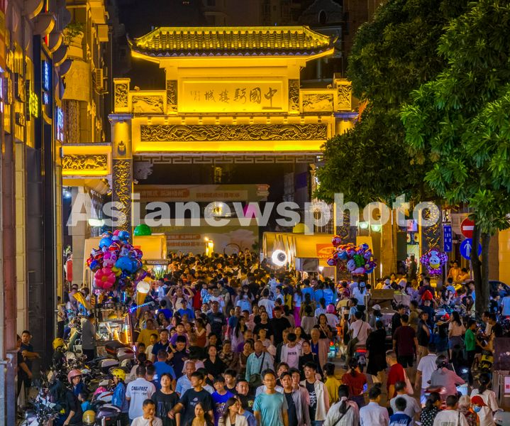 2024年10月2日,广西梧州市万秀区“骑楼城”步行街灯火璀璨,人头攒动,热闹非凡。