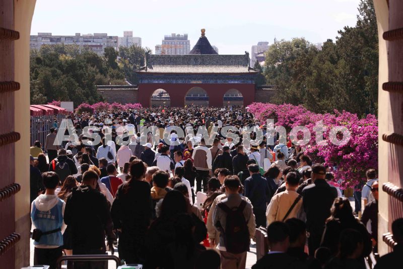 图片说明:2024年10月1日, 游客在北京天坛公园参观游览。