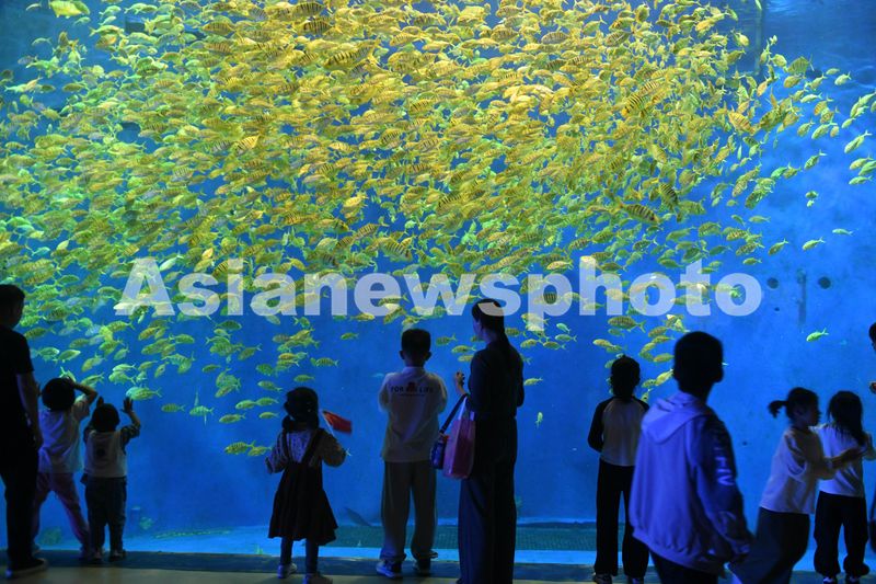 2024年10月1日,游客在安徽省阜阳尧泰汉海海洋公园内游玩。
