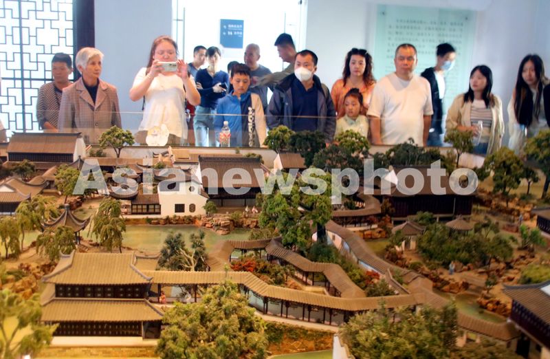 2024年10月5日,游客在江苏苏州园林博物馆内参观。国庆假期,许多游客来到江苏苏州园林博物馆参观,了解园林历史文化,以文化休闲的方式丰富假期生活。