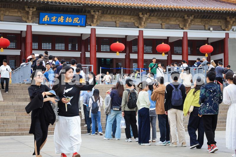 2024年10月5日,游人在南京博物院参观。国庆假期,人们走进博物馆参观展览,在浓浓的文化氛围中度过假期。