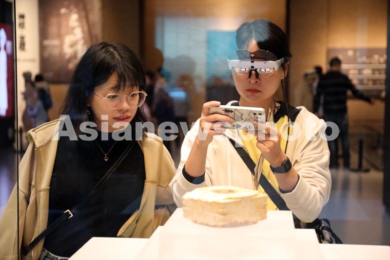 2024年10月5日,浙江省杭州市余杭区良渚博物院,游人在观赏展品。