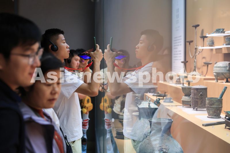 2024年10月5日,游人在南京博物院参观。国庆假期,人们走进博物馆参观展览,在浓浓的文化氛围中度过假期。
