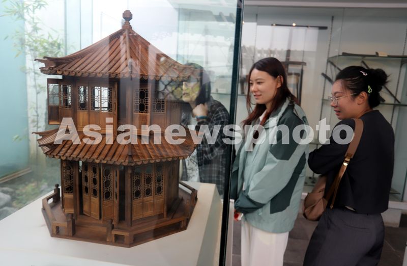 2024年10月5日,游客在江苏苏州园林博物馆内参观。国庆假期,许多游客来到江苏苏州园林博物馆参观,了解园林历史文化,以文化休闲的方式丰富假期生活。