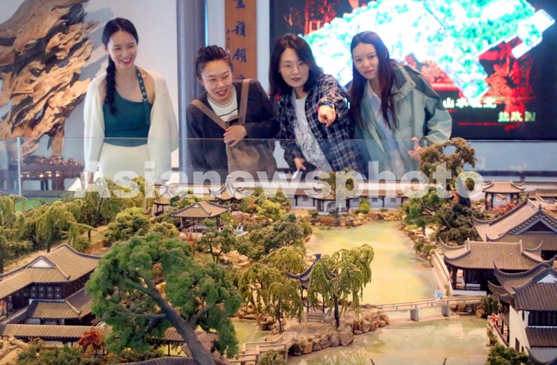 2024年10月5日,游客在江苏苏州园林博物馆内参观。国庆假期,许多游客来到江苏苏州园林博物馆参观,了解园林历史文化,以文化休闲的方式丰富假期生活。