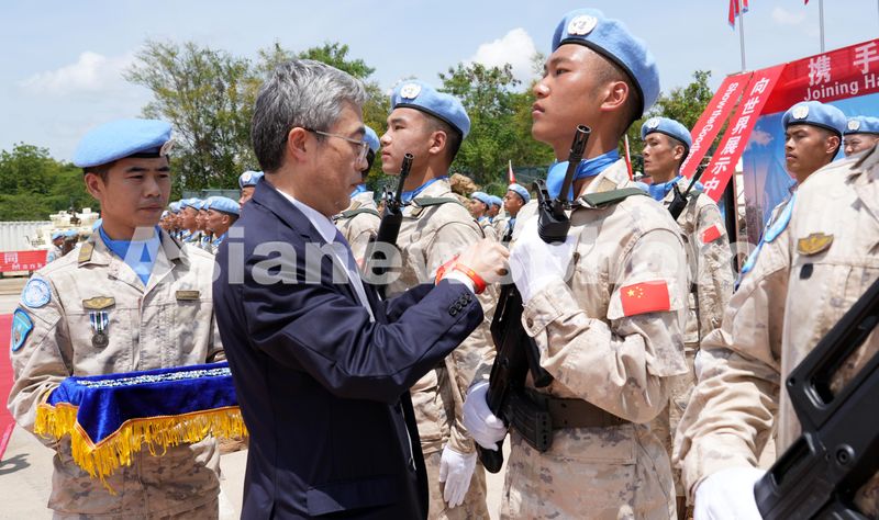 2024年10月3日,中国驻南苏丹大使马强为维和官兵授勋。