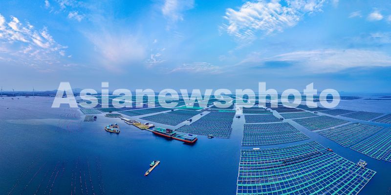 2024年10月7日,俯瞰山东省荣成市石岛管理区桑沟湾国家级海洋牧场。
